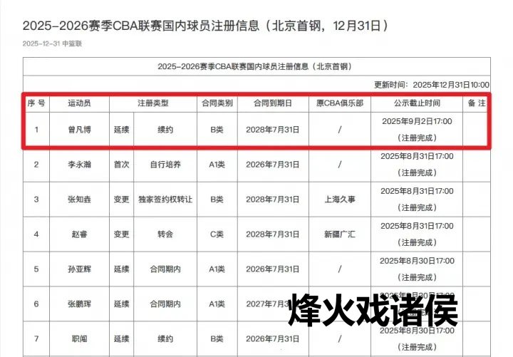 - 2026/01/21尊龙凯时 CBA官方:北京首钢已为曾凡博完成注册